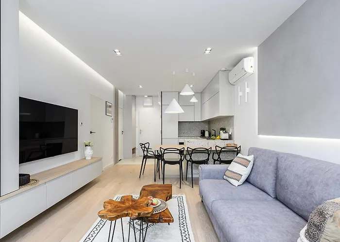 Tento apartmán o rozloze 44 m² se nachází 5 km od letiště Frédérica Chopina.